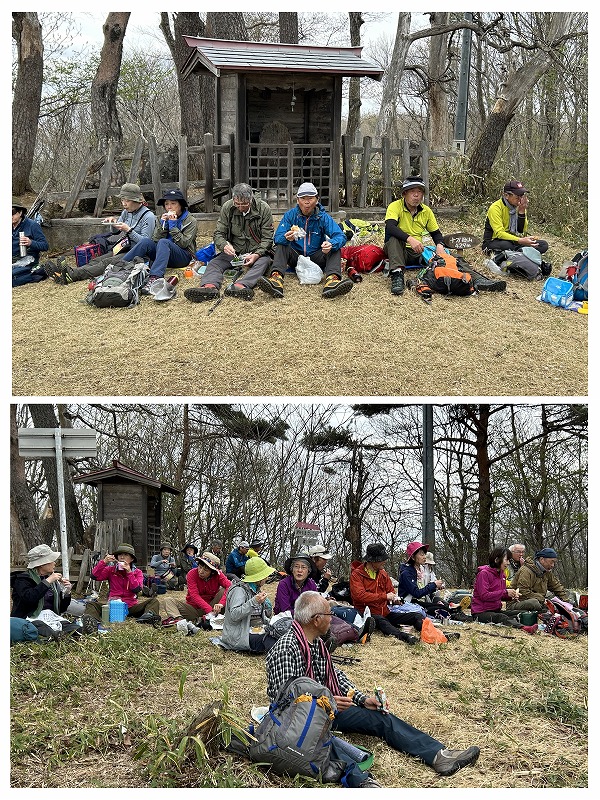 | 降られず春の山行を満喫、皆さんお疲れさまでした。及川さん今年度もどうぞよろしくお願いします。 | ||||||||||