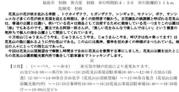| 今年度最初の例会は福島の花見山・十万劫山の周回コース | ||||||||||