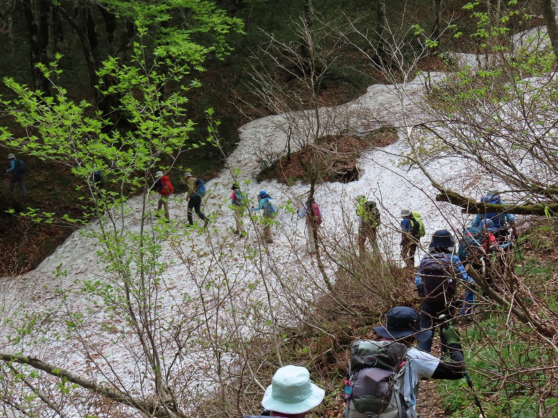 | も全員のチームワークでなんとか脱出。この後も残雪の不安があるため、急遽ここから登山をスタート。このトラブルで予定より | ||||||||||