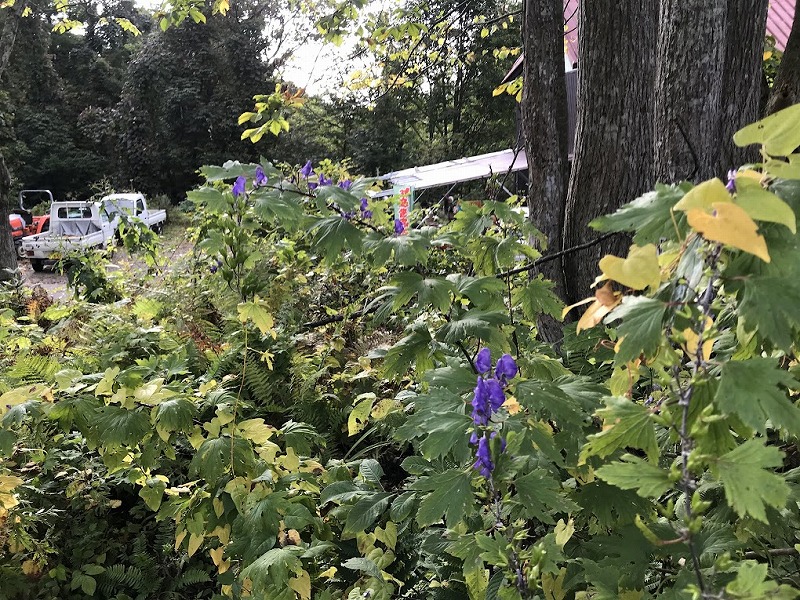 迎えてくれた満開のトリカブト 春はニリンソウと間違えないで猛毒です。