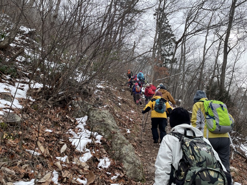 思いきや、そこは山の会、途中から稲荷神社前に戻り、今度は北側のトラバース道から赤十字