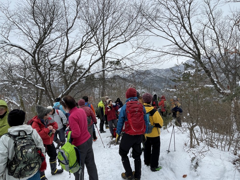 今日は恒例の千歳山新春登山です。29名の会員が参加。あちこちで挨拶の和が出来ています。