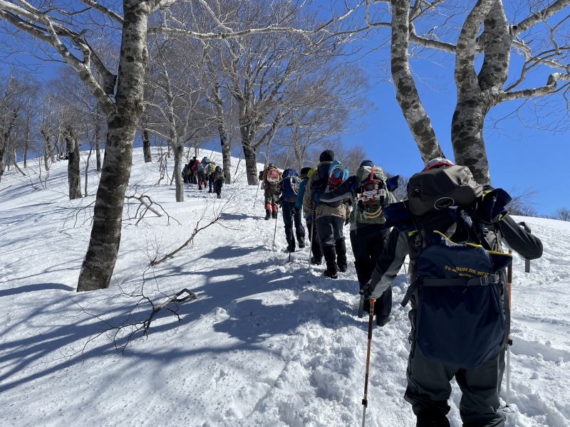 | 後半は東に張り出した雪庇に注意して、雄大な白銀の飯豊連峰を眺め、ラストの急坂をしっかり踏みしめて、歓喜の山頂へ。 | ||||||||||