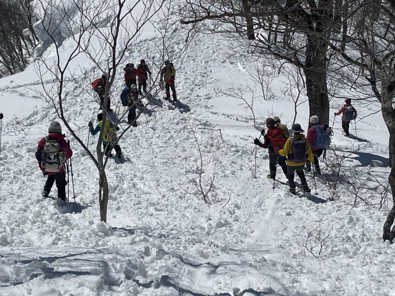 | 本日は今年度ラストの例会で当初の蔵王から変更した小国の白太郎山。秋に登った徳網山の道路の反対に聳える。 | ||||||||||