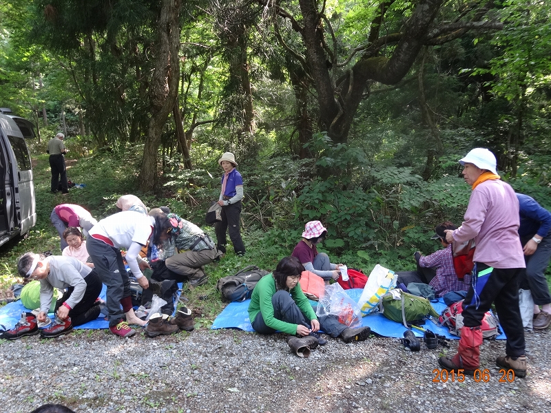 ブドウ沢登山口で、リーダーより今日の注意点を聞き登山開始。