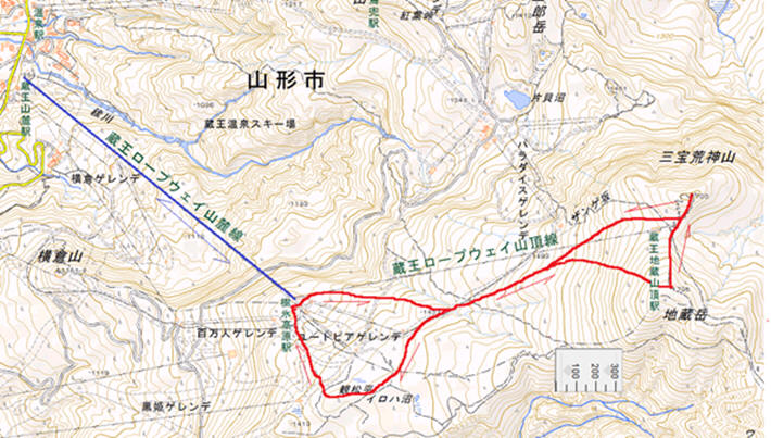 | 駐車場14:45~出発14:55==西蔵王高原ライン==山交ビル | |