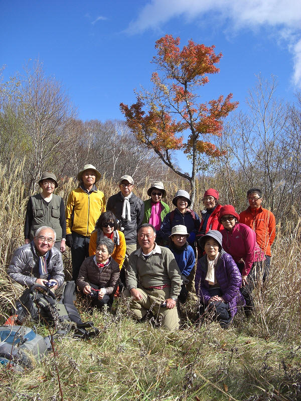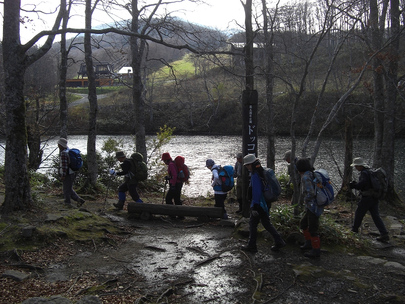 | 10月30日 | 蔵王温泉バスターミナル(8:20)~~温泉第3線リフト降り場着替えタイム(8:45)~~七曲コース~~高鳥コース~~中央高原駅~~ドッコ沼~~五郎岳中腹林道~~ヨシ沼(11:05~11:20)~~ウツボ沼、コタン標柱~~藪漕ぎ~~ウツボ沼休憩(12:25)~~コタン散策路分岐昼食(12:35~13:05)~~キャラボク原生林散策~~パラダイス第三ペアレフト降り場(13:40)~~コタンゲレンデ~~菖蒲沼ゲレンデ~~連絡コース、祓川登山コース入口休憩(14:00)~~姥神様(14:20)~~中森ゲレンデ~~蔵王温泉バスターミナル(15:25) |