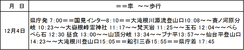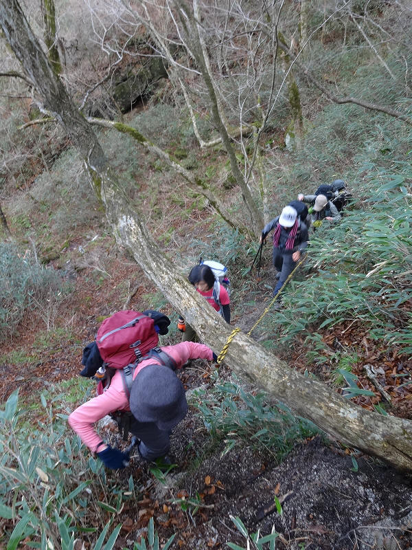 | 大滝根山は、日本三百名山で、阿武隈山地最高峰。山頂付近には、航空自衛隊のレーダー施設である大滝根山分屯基地がある。阿武隈山地の多くは花崗岩であるが、この山は石灰岩で覆われ、地下水に石灰岩が溶解され流出し、あぶくま洞などの鍾乳洞ができた。この時期になると阿武隈山地といえども雪に覆われるときもあり、コース上に鎖や沢もあり、春山と異なって大変な山である。更に原子力発電所に近いため放射線に対する不安は消えないが、皆さんの希望であり、計画した。油断のできない山である。 |