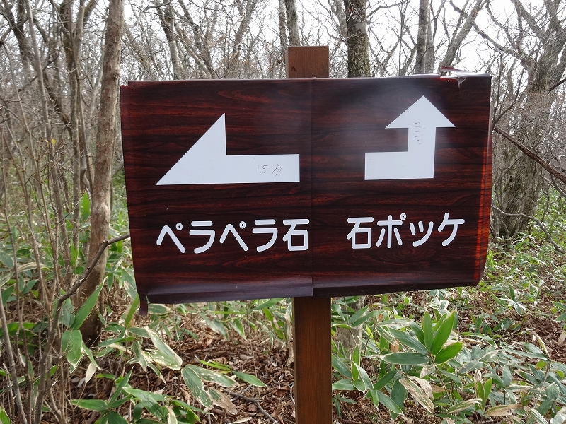 山頂から「ペラペラ石」・「石ポッケ」への道は、東北電力の鉄塔の下を通ります
