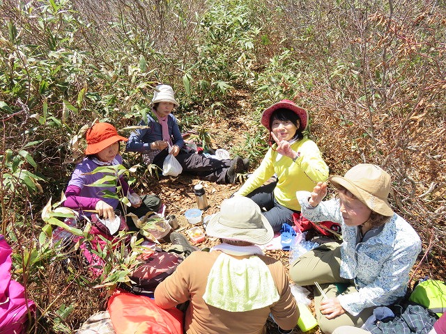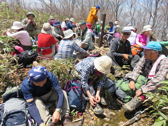 山頂に到着してほっと一息ですが、さすがに40人❕ 山頂広場は満員です。