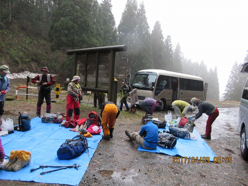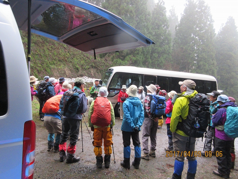 | 4月9日 | 県庁6:05 ==R13 == R113 == 小国道の駅 白い森== R113 == R7== 胎内市== 森林公園入口(トイレ休憩) 8:45==関沢登山口着 8:50 登山開始 9:05 …… 休憩9:40 …… 大峰山分岐10:00 …… 櫛形山山頂10:15 …… 市の沢分岐10:50 …… 飯角分岐11:14 …… 坂井越?の先 標高約414mあたりの地点 昼食休憩 11:50 ~12:22 …… 坂井越?12:34 …… 飯角分岐13:05 ……(途中隊列調整休憩)……飯角登山口14:15 下山 14:30 発 == 道の駅胎内14:50 ~ 15:00 ==R7 == R13 ==山形県庁駐車場着 17:35 |