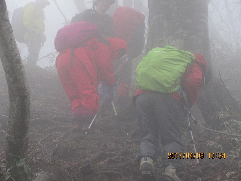 悪天候のため、飯角(いいずみ)への分岐点まで引き返し、下山