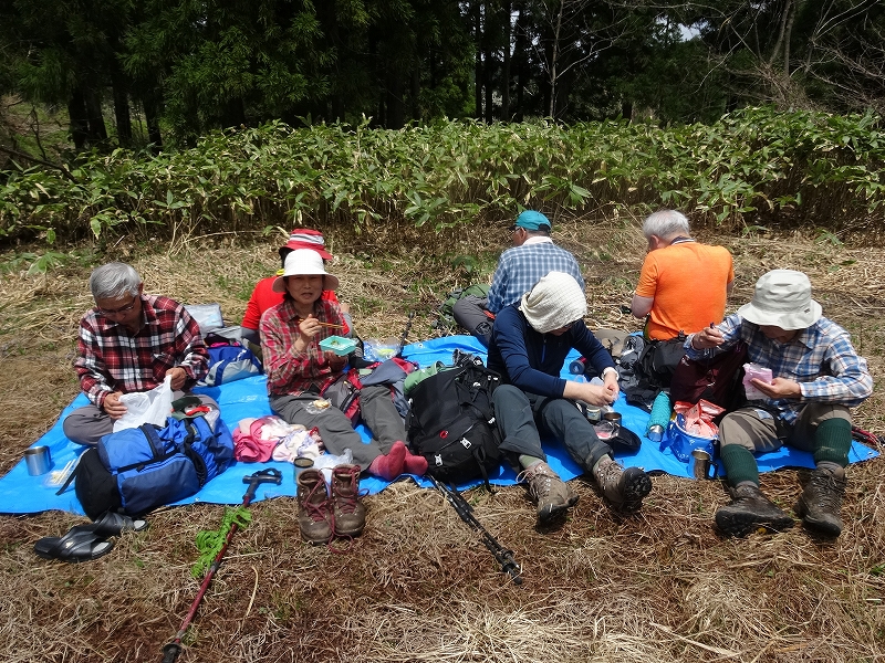 | 5月14日 | 県庁6:05 ==R13 == 米沢 == 綱木ダム == 登山口駐車場着 7:40 登山開始 8:07 …… 林道終点8:20 …… 尾根9:08 …… 兜山山頂9:44 下山開始10:00 …… 尾根10:26 ……林道終点11:05 …… 登山口駐車場着 11::20(昼食休憩) 12:00 = =天狗山登山口駐車場着12:58 …… 滑滝の近くの梯子13:15 ……林道出会13:35 ……護摩堂13:42 ……姥神14:13 …… 天狗山山頂14:25 下山開始14:32 ……姥神14:40……護摩堂15:06 ……下山 15:55 16:10出発 == 道の駅(めざみの里)16:25 ~ 16:43 ==R113 == R13 ==山形県庁駐車場着 17:55 |