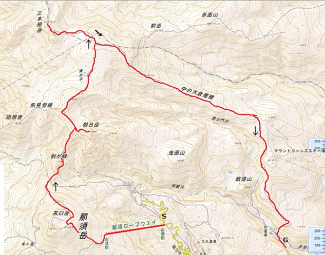 | ロープウエイ | 曽根11:20‥‥清水平11:45‥‥三本槍岳12:35~出発 |