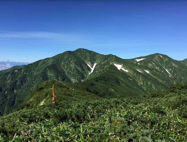 大朝日岳中腹から中岳を望む
