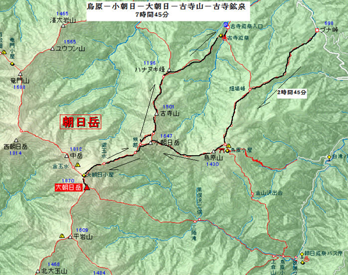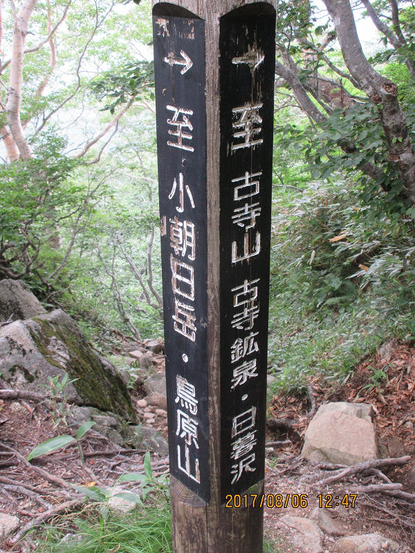 | 熊越12:40~出発12:50‥小朝日岳下13:15‥古寺山 | |