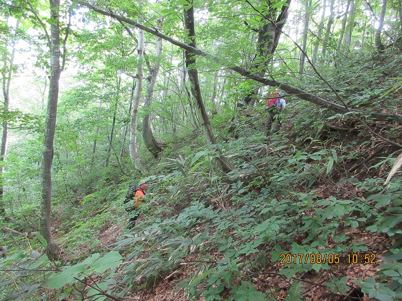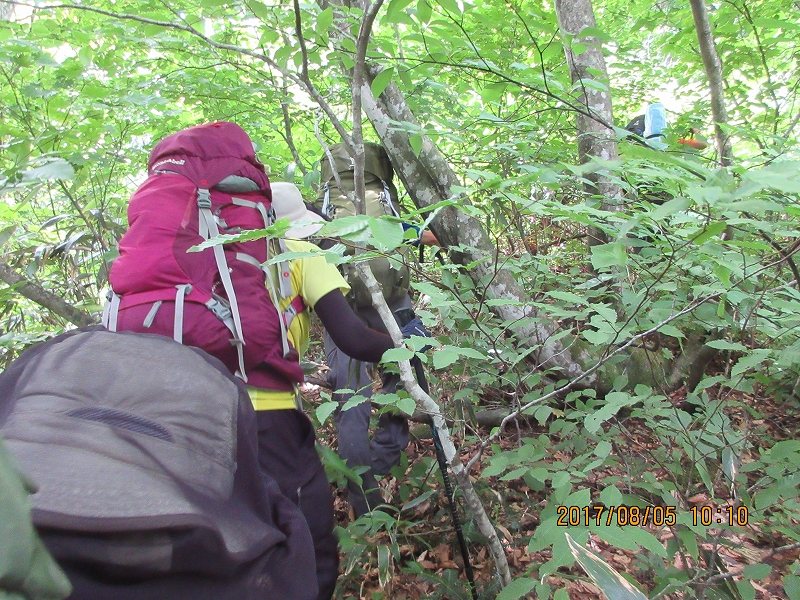 ザックをデポした熊越付近