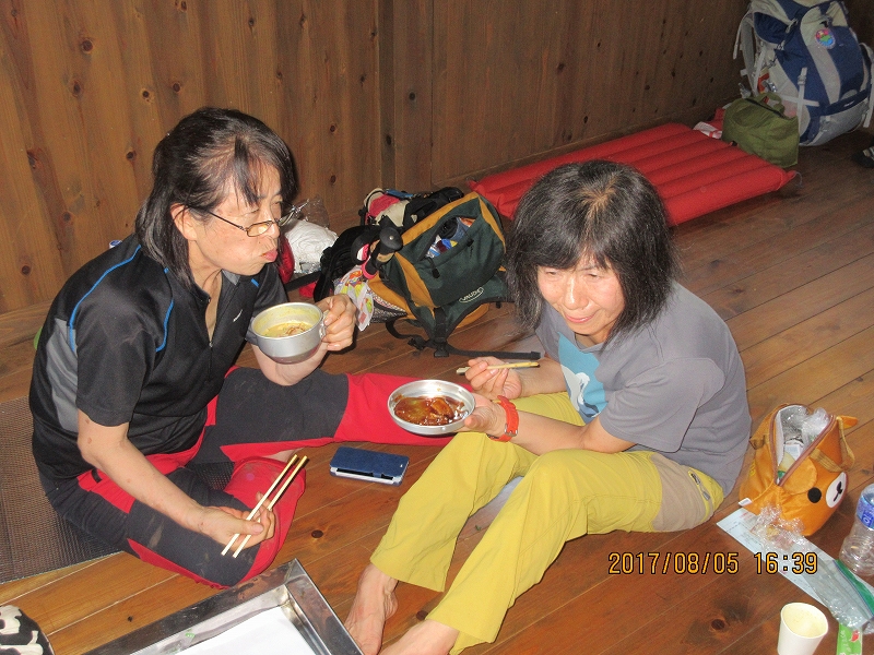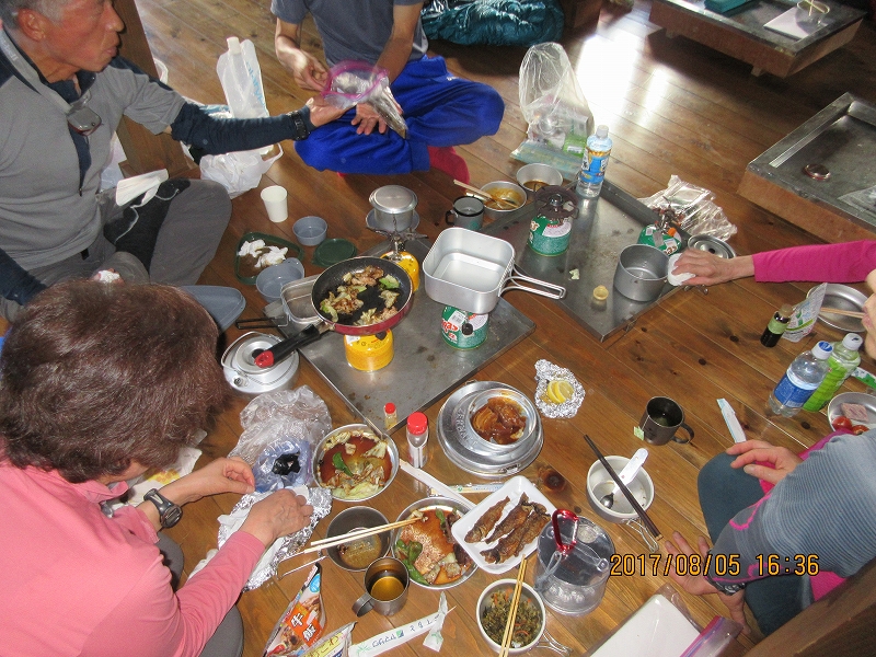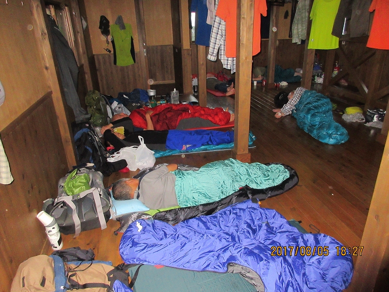 | 鳥原小屋着13:55~夕食準備16:00~就寝19:00 | |