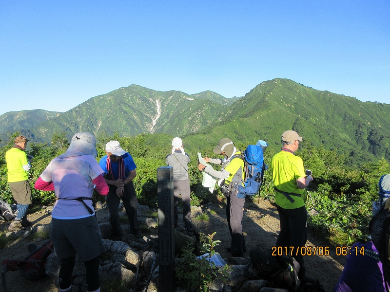 | 当会としての大朝日は、登れる山ではないとして登りたい山であった。しかしこの登りたい山を現実に登った山にしたいとの希望が多くこれまで許されなかった登山に道を開いた。当日は真夏の盛り十分な飲料水を確保し、熊越えから大朝日小屋間の斜面は特に熱射病等に十分注意して登りたい。天候や隊の状況に応じて小朝日から古寺へ下ることも十分理解してほしい。天気が良すぎても困るが山頂は絶景であろう。 |