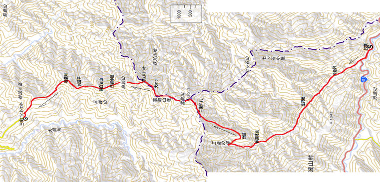 | (距離 13.5㎞ 標高差 登り 約1000m 下り 約960m 所要時間 約9時間30分) | |
