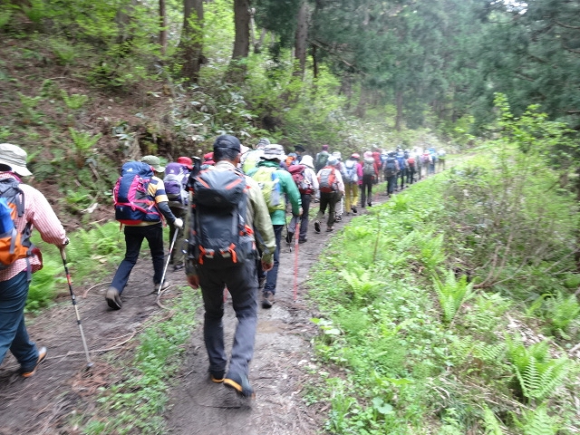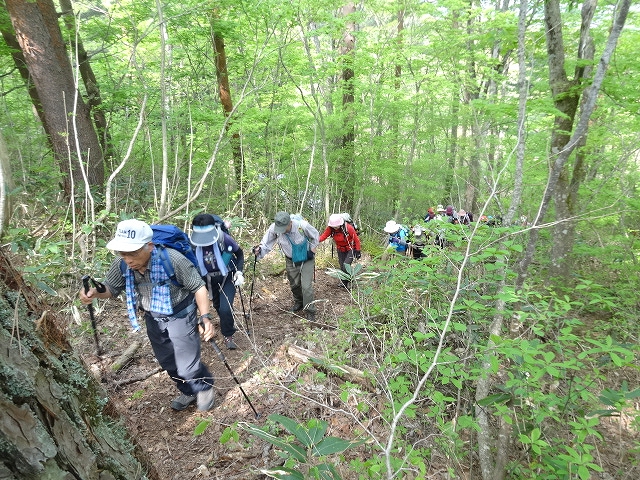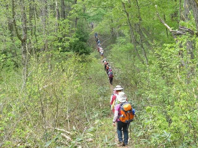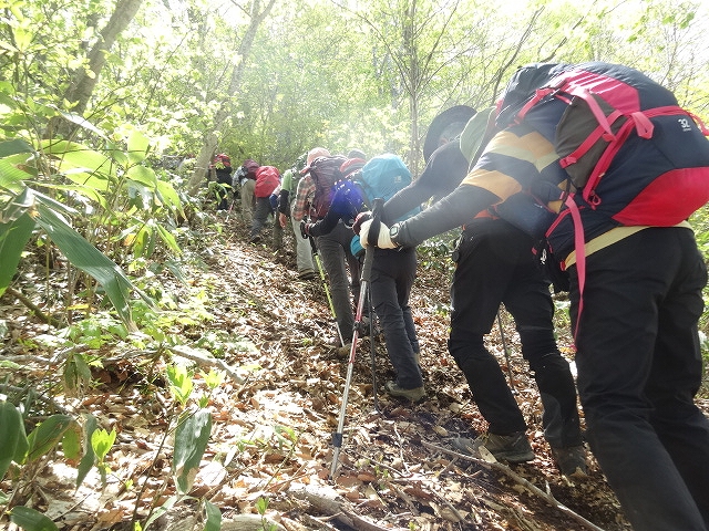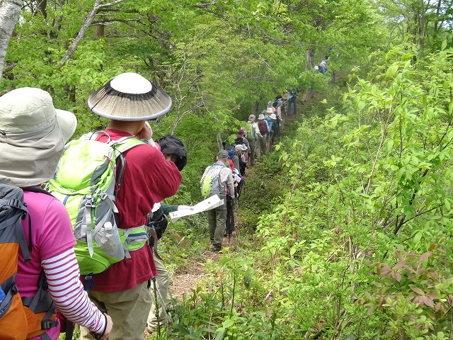 本格的な登山シーズンに入り、今回は尾花沢市の奥まった細野地区にある「やまがた百名山の御堂森」です。山の神にて本登山で大変お世話になった細野の山を愛する会の五十嵐会長から「御堂森は春、7合目付近にイワウチワが群生することで日本一有名な山で信仰の山でもある。」と挨拶があった。 林道を歩いて約35分、登山口の雨沼駐車場に到着。なんと黄色い郵便ポストが鎮座している。登山届投函の入れ物であった。さて登山開始。山肌が芽吹く新緑の季節、登山愛好家にとっては最高の時期である。ほどなく稜線に出ると防火線入口だ。足元がフカフカして心地良い。紫のナガハシスミレやピンクのヤシオツツジ、白のタムシバがきれいだ。ロープのある急な降り場や反転急登を進むと三角形の山頂が見える展望台に出る。さらに登ると右側の窪地に雪渓があり、その脇にイワウチワが咲いていた。しばらく先の左側斜面にも群生しておりウワーと歓声が上がる。登山者の目を魅了する花の一つだ。ブナの木にごつごつとしたコブが付いているブナコブ平で一休み。 登山口から約2時間、木々の開けたところの北方に雪を被った凛々しい鳥海山が顔を出す。ブナ林を進むと正面に大きな壁が見える。きつい急斜面を登りきると雪渓があり、その先が山頂で信仰の象徴である祠が祀られている。大変眺望が良く、神室連峰や朝日連峰、葉山の上に重なるように真っ白い月山が見える。 山頂で昼食を楽しんだ後、同じルートを下山。午後に日射しが強くなったせいか、ブナの葉がキラキラと緑が濃くなった感じがする。途中、再びイワウチワの花を愛でながら山の神を目指す。予定より約2時間早く県庁に到着。本例会は、お試しのご夫婦も参加し整備されたコースとはいえ、中級でアップダウンが連続し少しきつかったかも知れませんね。 東根側に登山道を整備中とのことであり、将来縦走が可能になったら、またイワウチワに会いに来ようと思う。 |