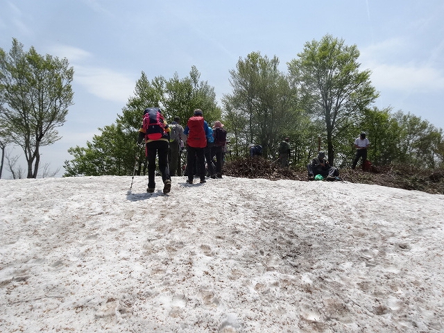 残雪を踏んで、山頂に到着。