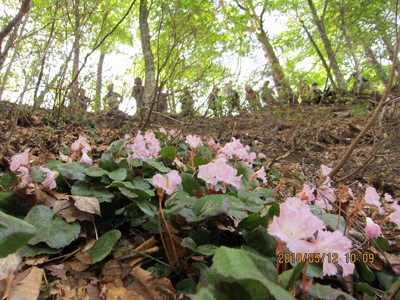 この山の一押し、イワウチワの群生地を覗き込む。