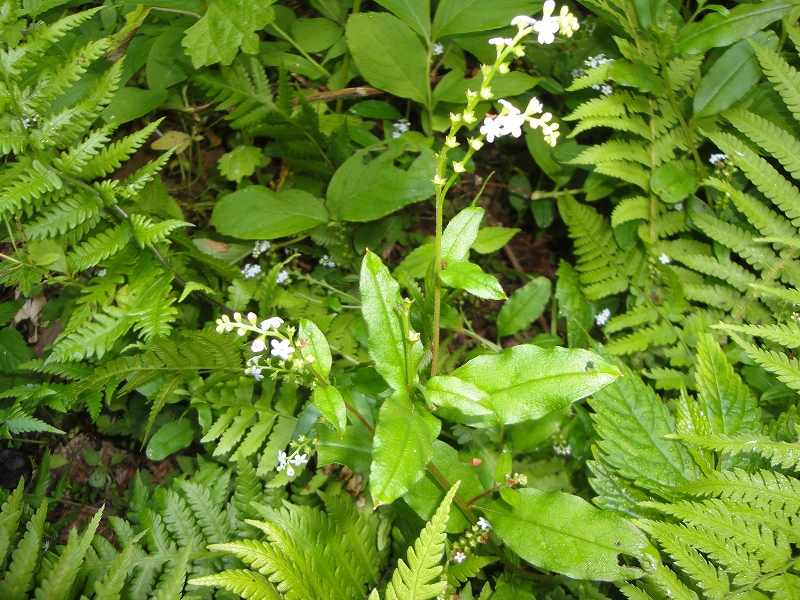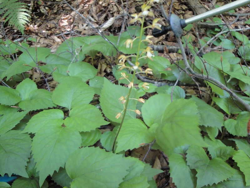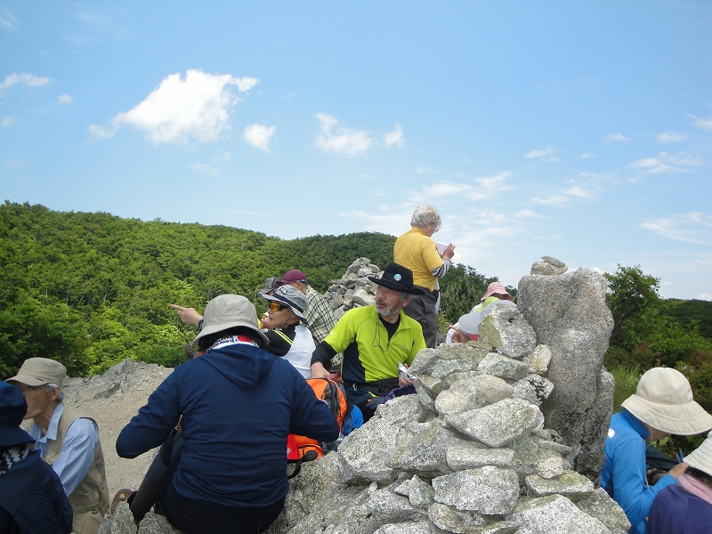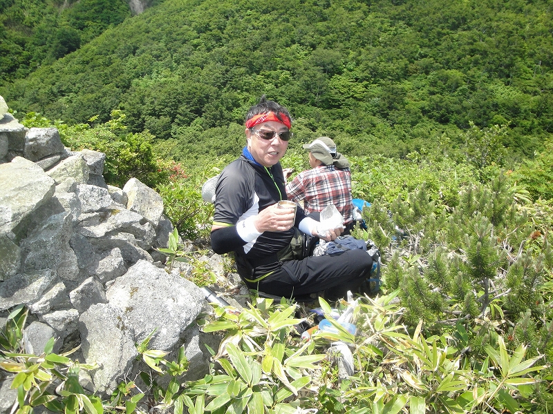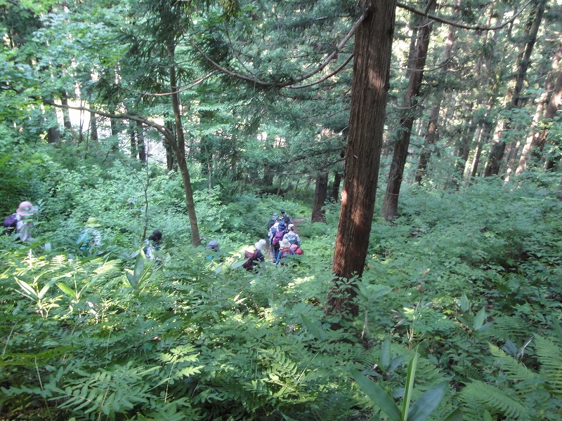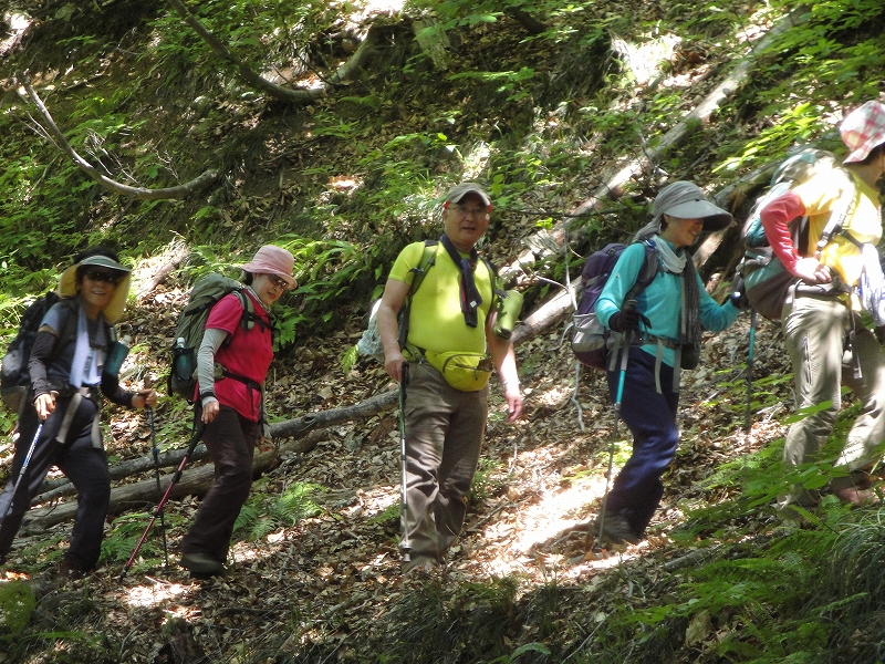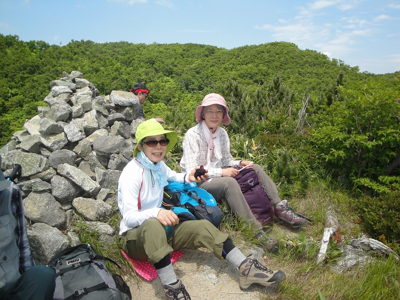 梅雨に入りましたが、今年は雨が少ない様です。今日は朝から良いお天気で気持ちがいいです。草が少しうるさい草岡コースの入口から 飛び石で小川を2か所渡り、朝日軍道の名残のある幅広いブナ林の中を ジグザグと行くと 左手に堀が見える。オケサ堀です。此処からは、コケイランやアカモノが咲く緩やかな道になり 葉山神社に着く、少し下り 360°見晴らしの良い奥の院に着きました。祝瓶山が「ツン」とカッコいい、昼食を済ませ山頂近くの湿原を覗きましたが 雨が少ないせいでしょうか乾いている様でした。帰りは白兎コースを下りギンリョウソウ咲く長い尾根道を下り 葉山神社の鳥居を潜り 葉山森林公園に着きました。 |