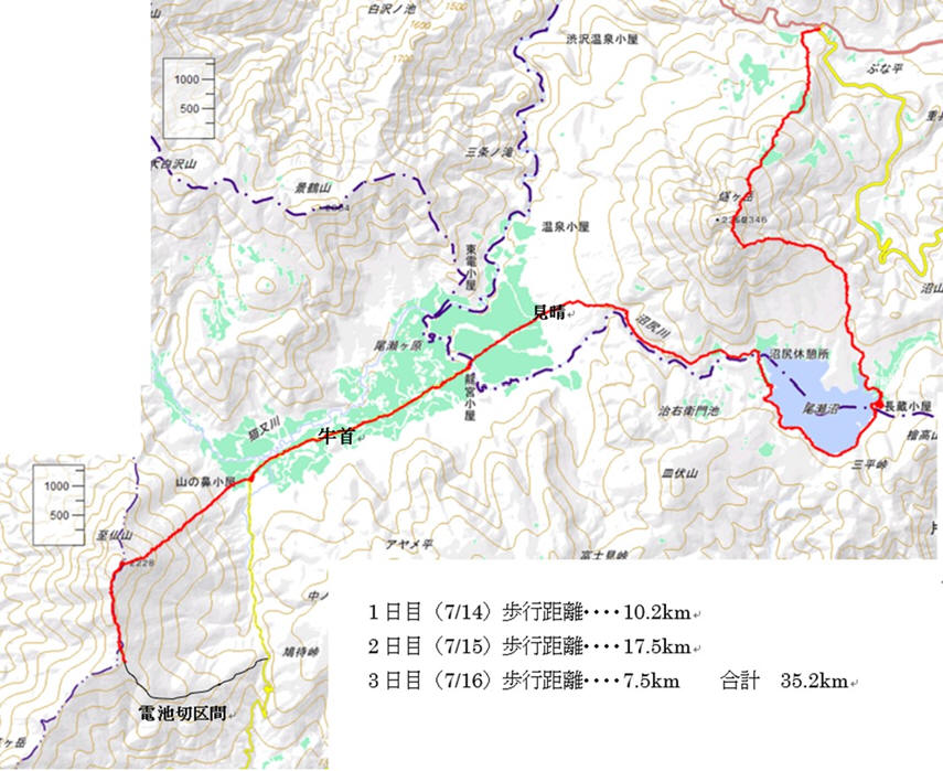 | ~出発13:40‥‥牛首分岐14:20~出発14:25‥‥山の鼻小屋15:00~風呂 | |