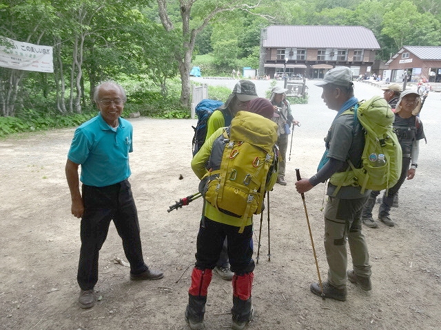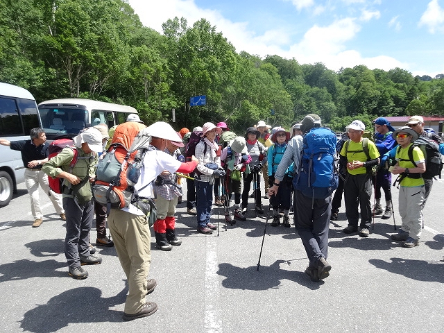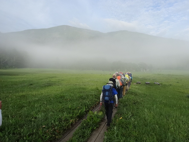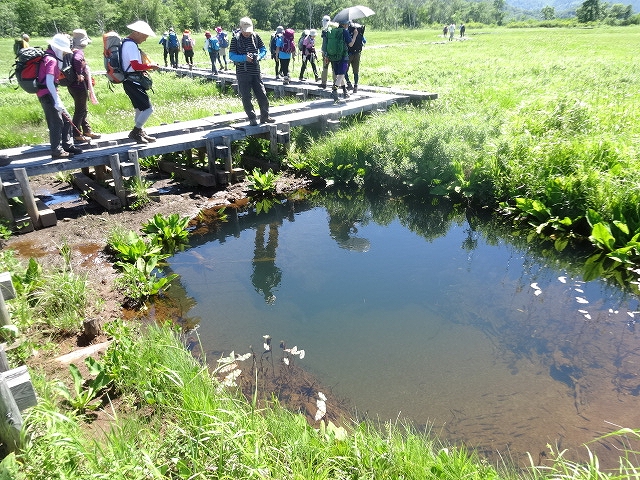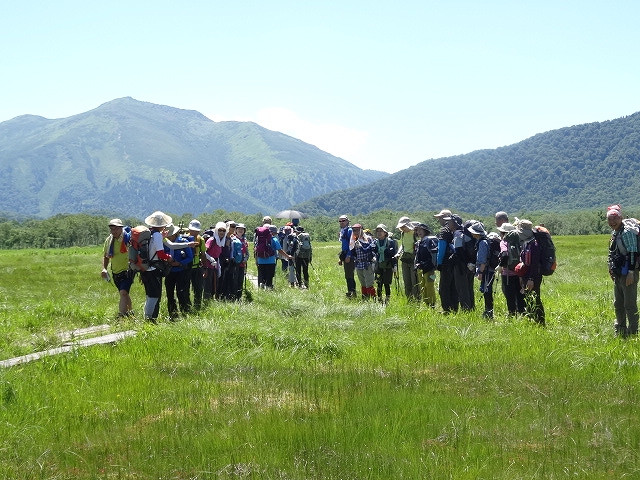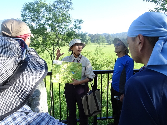 2047 尾瀬沼のガイドさんより、説明を受ける男性達。