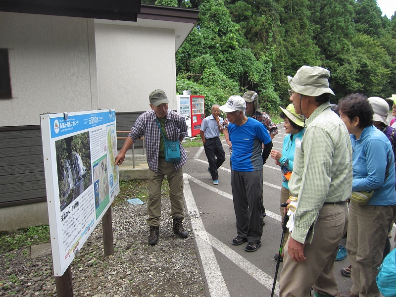 | 8月25日 | 県庁6:05==道の駅尾花沢7:10==ブルーライン8:37==鉾立P着(稲倉山荘で役員会議)9:15~10:40==元滝P11:05~11:15‥‥元滝11:30~11:40‥‥水場‥‥元滝P(昼食) 11:55~12:35==奈曽の渓谷P12:40‥‥奈曽白滝12:45‥‥総合案内所13:00==獅子ヶ鼻P13:45‥‥燭台ブナ‥‥炭焼き釜‥‥ブナの巨木異形ブナあがりこ大王14:15‥‥出つぼ‥‥鳥海マリモ15:00‥‥獅子ヶ鼻湿原P15:30==大平山荘16:15~風呂~夕食~就寝21:30 |