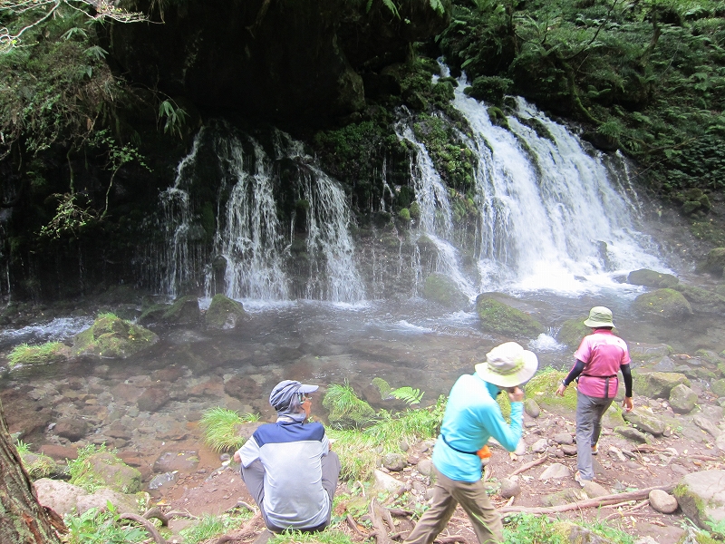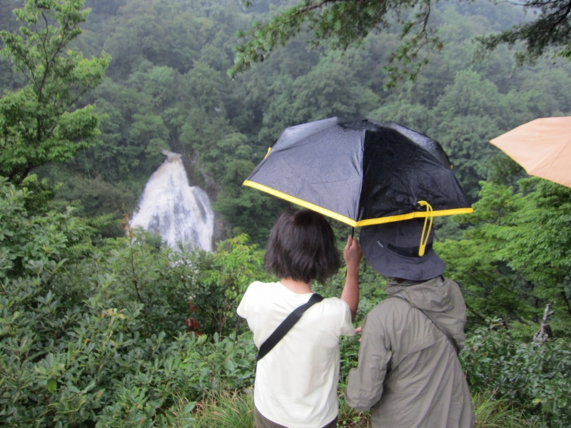 | 8/25 鉾立到着後、急激な風雨により、登山中止を決定、にかほ市の元滝・奈曽の白滝・中島台の獅子ヶ鼻湿原に行く。 |