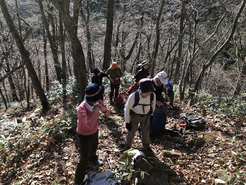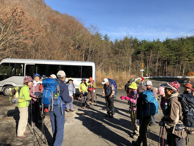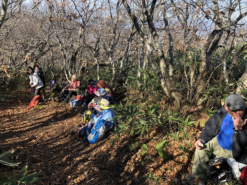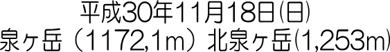 | 11月18日 | 県庁07:04==秋保文化の里(トイレ休憩)07:50==泉ヶ岳表コース登山口08:34~出発08:50‥‥薬師水‥‥休憩09:10‥‥胎内くぐり09:30‥‥ドーダン林09:55‥‥にせピーク10:00‥‥泉嶽薬師如来.泉ヶ岳山頂10:45‥‥展望台10:50‥‥三叉路11:30‥‥北泉ヶ岳山頂(昼食)12:05~出発12:35‥‥三叉路13:00‥‥お花畠13:30‥‥水神(休憩)13:40‥‥水神平13:55‥‥関口14:15‥‥水神コース登山口14:20‥‥キャンプ場駐車場14:30~出発14:45==秋保文化の里(トイレ休憩) 磊磊峡15:30==県庁着16:35 |