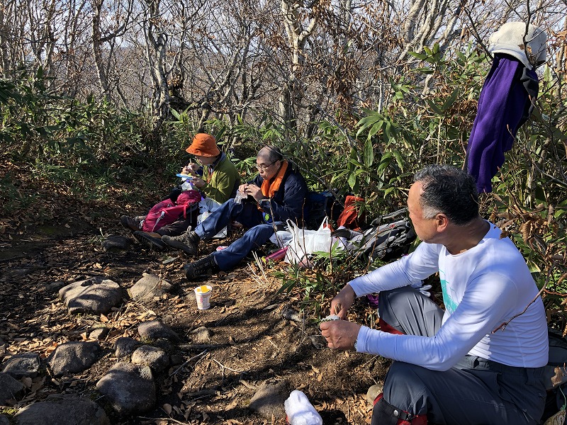 北泉ヶ岳山頂でランチタイム。山頂で味わう温かいカップ麺は最高だ。