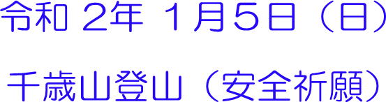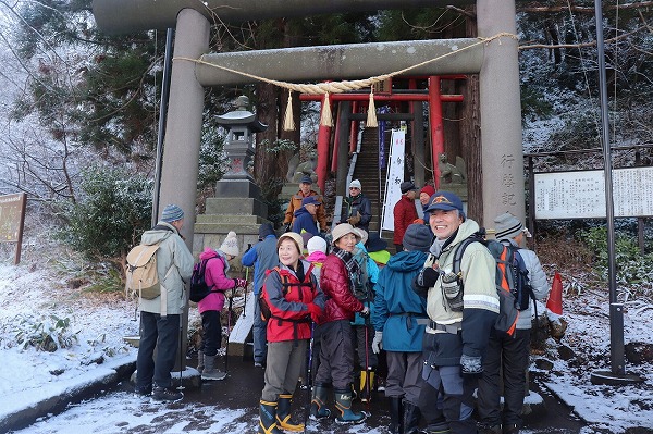 | 1月5日 | 県庁駐車場集合09:00(会長挨拶)出発09:15‥‥千歳稲荷神社参道入口09:32‥‥千歳稲荷神社(岩五郎稲荷神社)10:41‥‥善光寺岩10:02‥‥千歳山山頂10:21 乾杯10:32 下山開始10:42‥‥五郎宗吉稲荷神社(宗五郎稲荷神社)11:08‥‥下山口11:15‥‥千歳山公園11:18‥‥11:37そば処ヤマモ昼食懇親会12:40 |