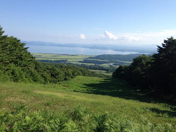 眺望が開けて、あかぬま、檜原湖を臨みます。