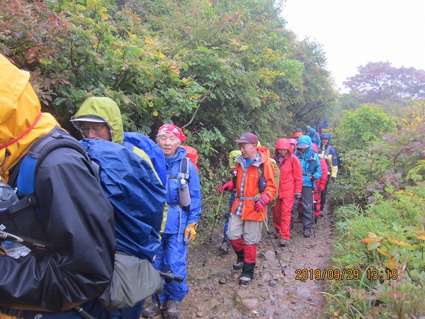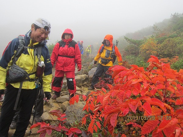 | 今日は朝から小雨 おそらく安達太良山はもっと 雨が激しくなるのではないかと心配です。奥岳登山口の駐車場から あだたら高原スキー場を 登って行く、アキノキリンソウ エゾオヤマリンドウ等秋の花が咲いていたが 暫くすると 小雨が降り始め 登山最後まで 降り続きます。薬師岳展望台でリフト組と合流して 山頂を目指す。風の強い山頂で写真を急いで取り 下山を開始 昼食のため くろがね小屋を目指す。くろがね小屋からは湯川渓谷となり 足元注意や落石注意の看板や 丸太の橋やクサリ等 小雨の中 ひやひやしながら 長い下りとなりました。もう花は余り有りませんでしたが、紅葉が少し始まっていて綺麗でした。 |
