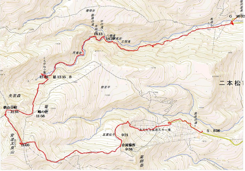 13:55‥‥荒龍岩14:00‥‥二のはし14:15‥‥天狗岩14:20‥‥八幡‥‥歩き