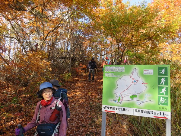 | 晩秋を迎え、やまがた百名山2座の里山歩きです。高戸屋山は、川西町で一番高い山でマウンテンバイク大会のコースになっています。川西ダリア園付近の登山口から西回り、東回りと周回します。山頂から朝日、蔵王、吾妻などの山々が望めます。秋葉山は、通称一の山から三の山まで三つのコブがあると言われ、鳥居もあるそうです。向山公園付近の秋葉山登山口からピストンの山歩き、山頂から飯豊連峰が望めます。いずれも初級コースですが、転倒事故のないよう十分注意しましょう。 |