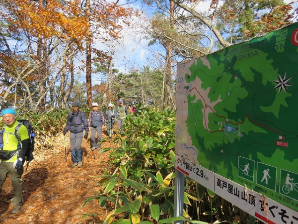 小休止 9:24…… 休憩 9:31~9:34 …… 山頂まで500m地点 9:40 == 高戸屋山山頂 9:51 休憩 …… 下山開始