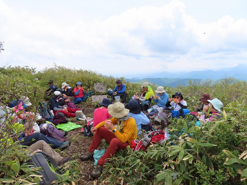 | 寒風山の手前は唯一急登で滑りやすく難儀するも無事登頂。再びここでしばらく休憩して、アオノ背、コブノ背を通過。 | ||||||||||