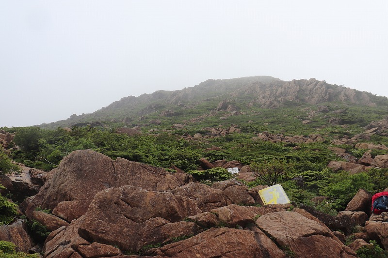 樹林帯を過ぎ、五合目付近からだんだん風が強くなり、前回の秋田駒ヶ岳の