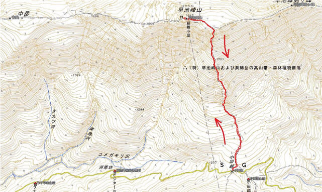 滑りやすい蛇紋岩の岩場を慎重に下ってケガなくほぼコースタイムで全員無事下山、