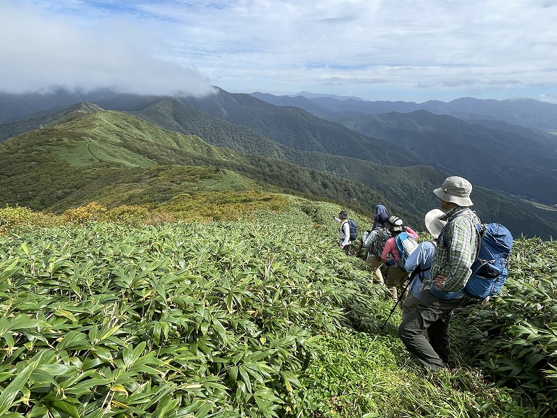 | 烏帽子山手前あたりから、日差しが照りつけ本格的に汗をかき始める。東北のミニアルプスの | |||||||||
