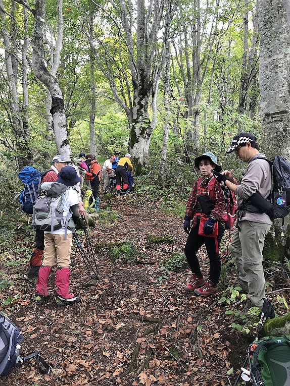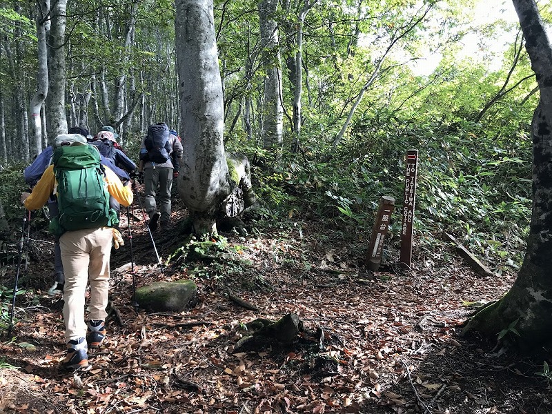 | 広々としたブナ林の道を順調に高度を上げて行く。畑コース分岐点を過ぎると何か所かドロドロの泥道を | ||||||||||