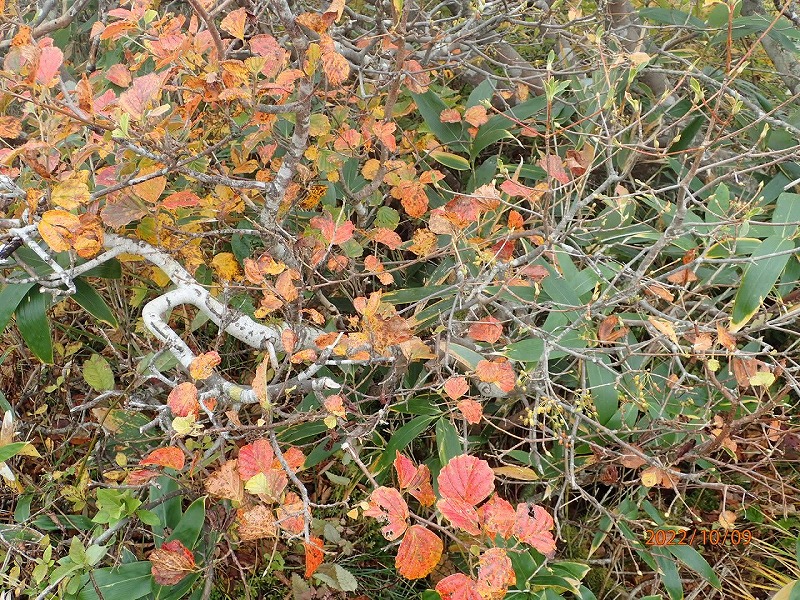 | 綺麗な紅葉を愛でるはずだったが、どこを見渡してもいまいち。途中一部ヤブ化した道、登山道を | ||||||||||