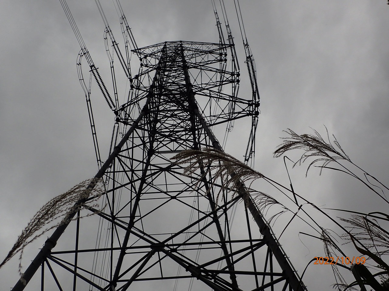 目印の巨大な送電線鉄塔、ゴールまで間近