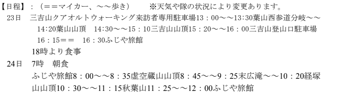 | 2日間で、ほぼ予定時間で5座に登る。けっこう疲れたが、交流も深まりあー楽しかった。 | ||||||||||