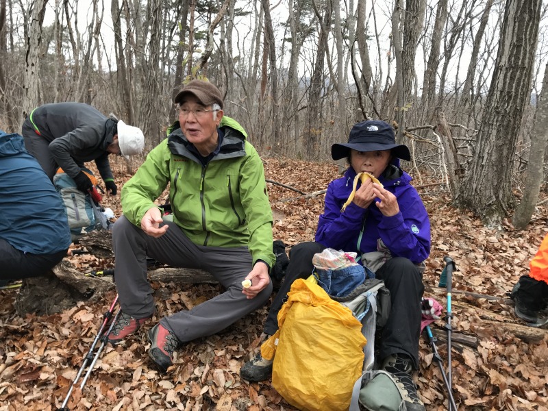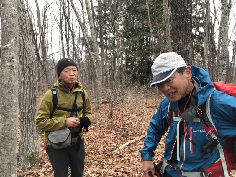 大パーティとなった。ひたすら登ったり下ったり、同じ様な斜面を六回繰り返しの縦走ながら、途中少しは汗も出ました。 |