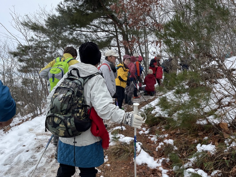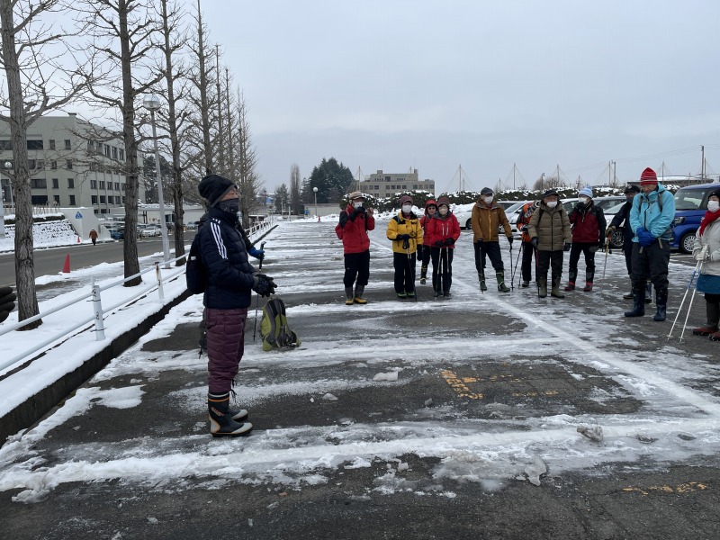 今日は恒例の千歳山新春登山です。29名の会員が参加。あちこちで挨拶の和が出来ています。